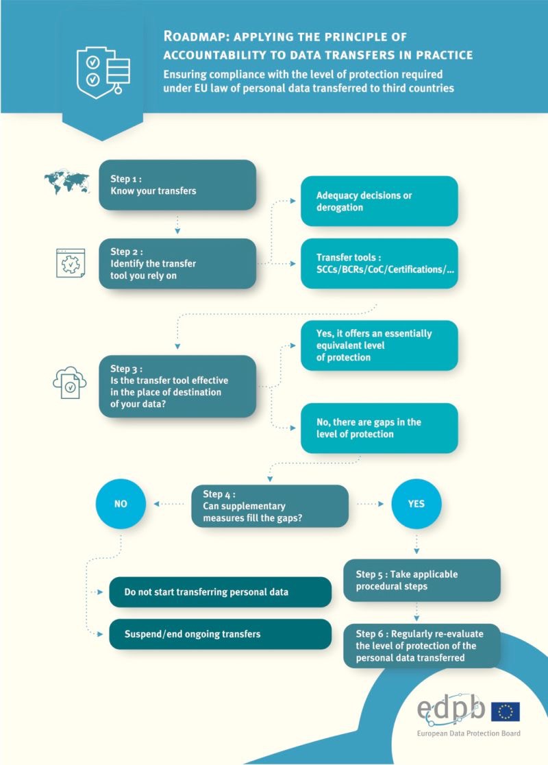 Sulla scia della nota sentenza c.d. Schrems II, l’EDPB interviene con le Raccomandazioni 1/2020 per identificare le misure supplementari atte ad assicurare che il trasferimento dei dati garantisca il rispetto del livello di protezione dei dati personali nell’UE.